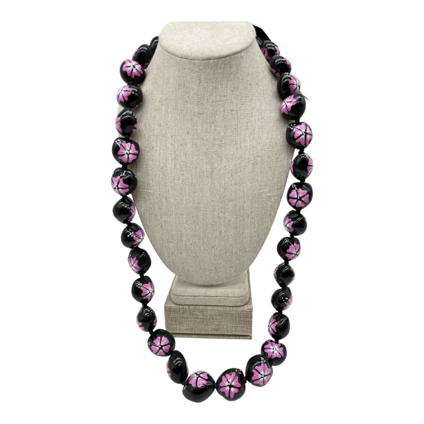 32" Kukui Lei with pink hand painted hibiscus on kukui