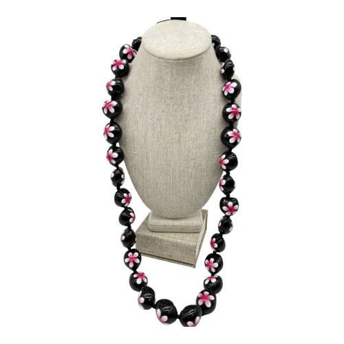 32" Kukui Lei with white and pink hand painted plumerias on kukui