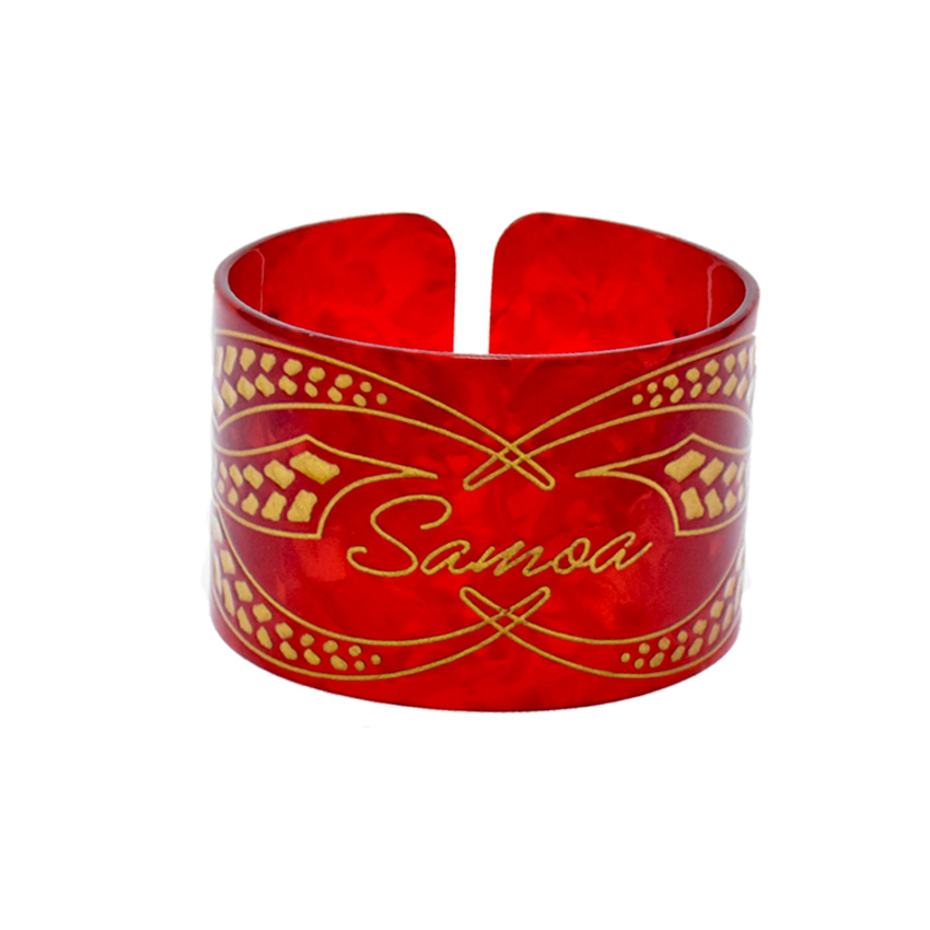 Deluxe engraved turtle shell cuff bracelet - 50 mm- Samoa script (RED)